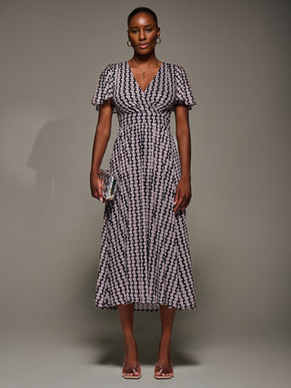 3/4 Sleeve Print Jersey Maxi Dress, Navy Multi