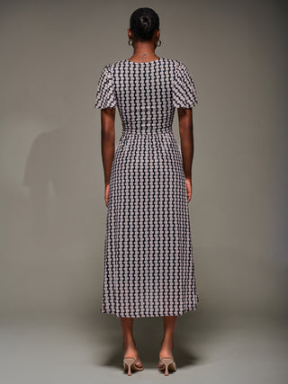 3/4 Sleeve Fold Neck Midi Dress, Navy