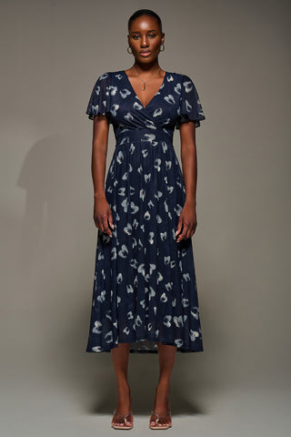 Mesh Short Sleeve Midaxi Dress, Navy Abstract