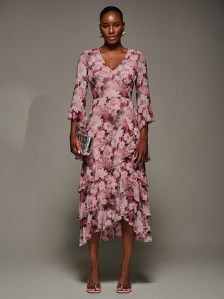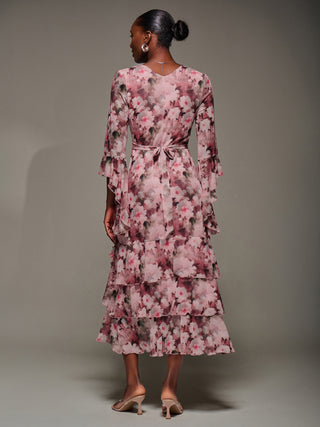 Sleeveless Chiffon Halterneck Midaxi Dress, Pink Floral