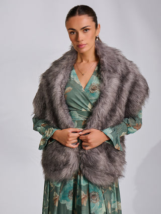 Jolie Moi Faux Fur Shawl Wrap, Wine