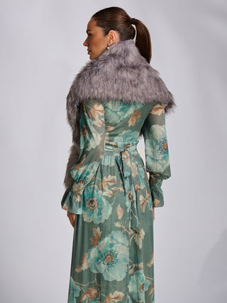 Retro Stand Collar Faux Fur Shrug, Cream