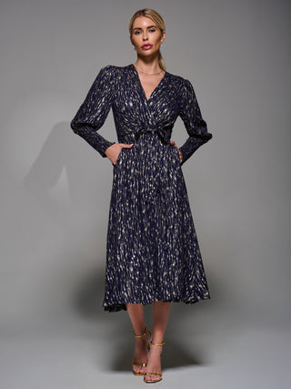 Long Sleeve Chiffon Midaxi Dress, Navy
