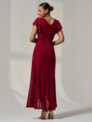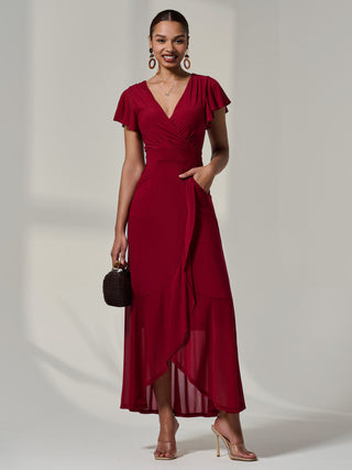 Amira Cape Sleeve Wrapped Maxi Dress, Merlot