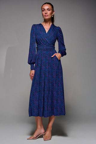 Josie Animal Print Wrap Neck Maxi Dress, Navy Animal