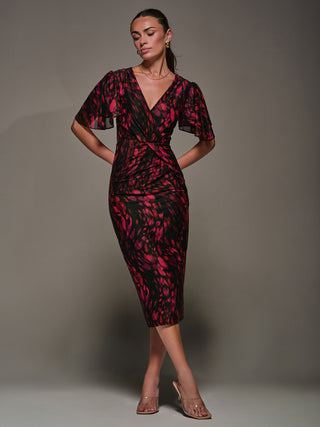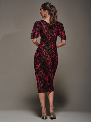 Litzy Print Flute Sleeve Midi Dress, Animal Multi