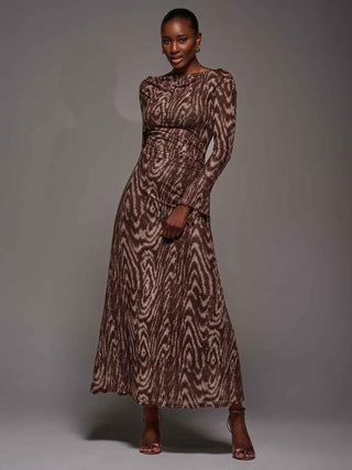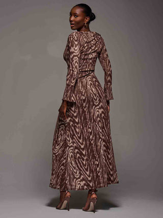 Dipped Hem Shirt Midi Dress, Brown Animal