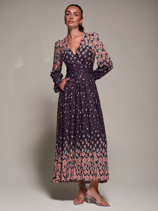 Jolie Moi Nancy Long Sleeve Maxi Dress, Navy White Floral
