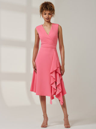 Priya Frill Dipped Hem Dress, Red