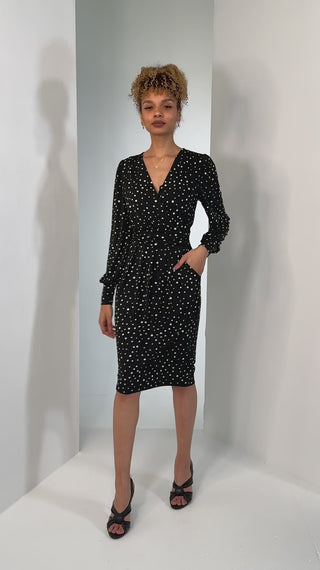 Gwen Print Long Sleeve Pegged Dress, Black Spot