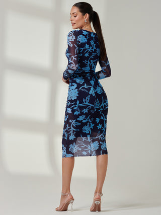 Blue Greta Long Sleeve Mesh Maxi Dress, Navy