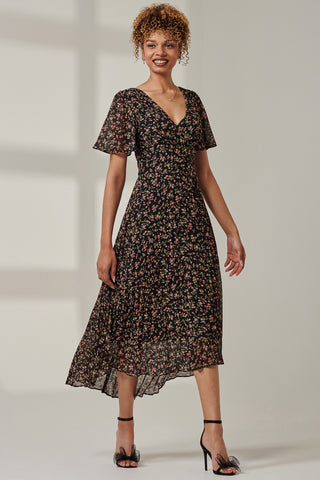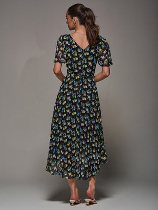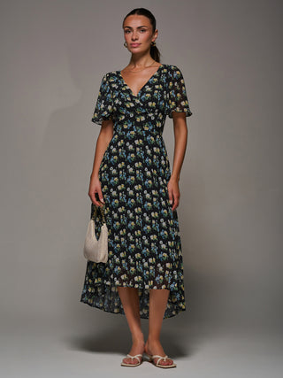 Floral Ruffle Hem Maxi Dress Teal Floral