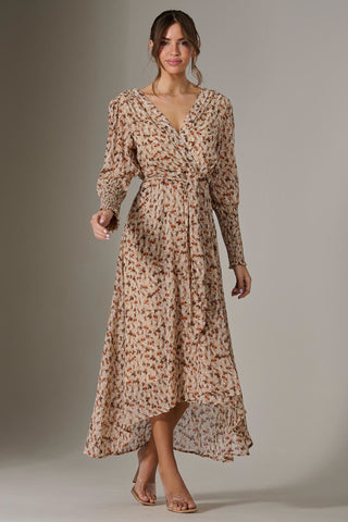 Angel Sleeve Wrapped Mesh Maxi Dress, Dark Teal