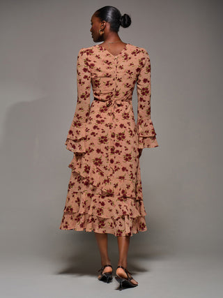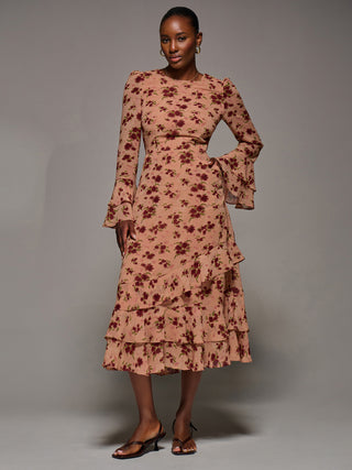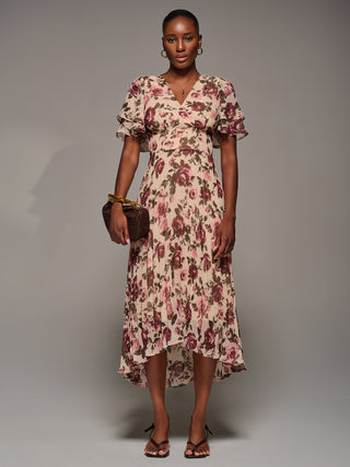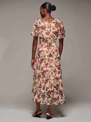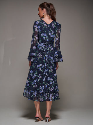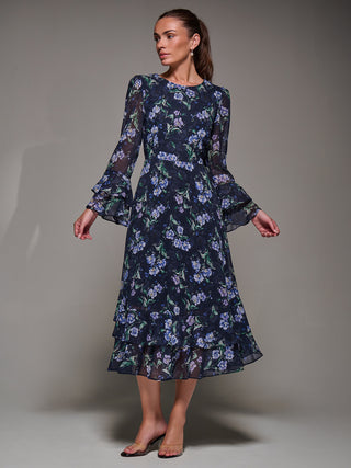 Gavina Ruched Sleeve Mesh Maxi Dress, Navy Floral