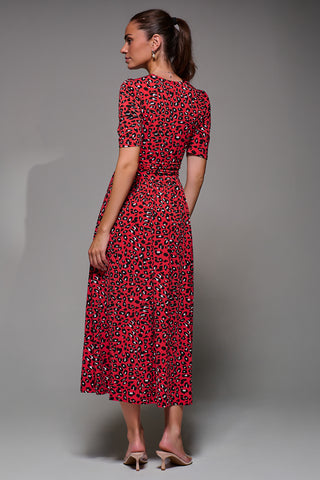 Jolie Moi Frill Detail Maxi Dress, Red Animal