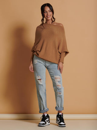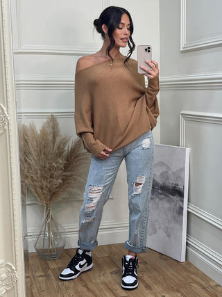 Made in Italy Asymmetric Draped Knit Jumper, Chocolate