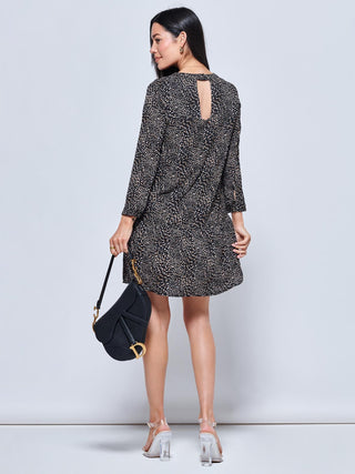 Frill Chiffon Mini Swing Dress, Black Ditsy
