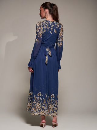 Long Sleeve Mesh Maxi Dress, Navy Floral