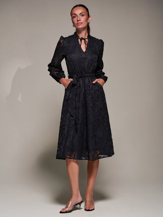 Long Sleeve Textured Midi Dress, Beige Abstract