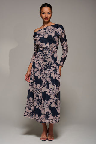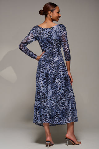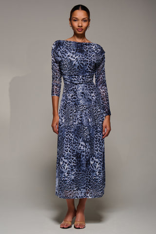 Ruffle Hem Floral Mesh Midaxi Dress, Blue Floral