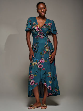 Floral Ruffle Hem Maxi Dress Teal Floral