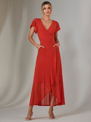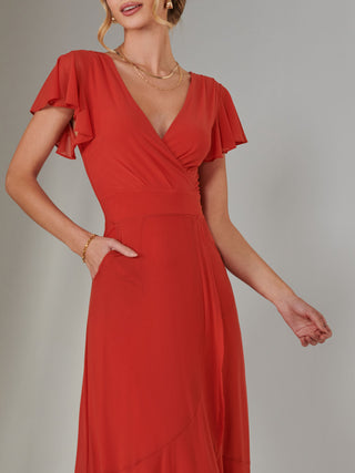 Cape Sleeve Wrap Maxi Dress, Brick Red