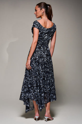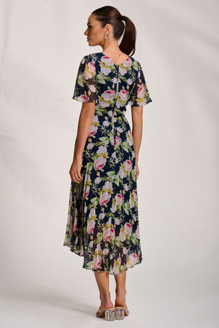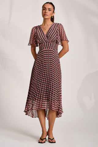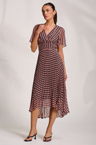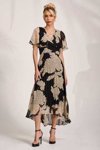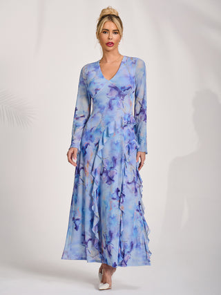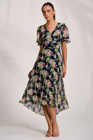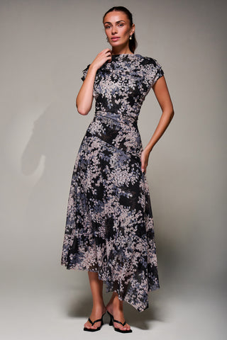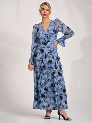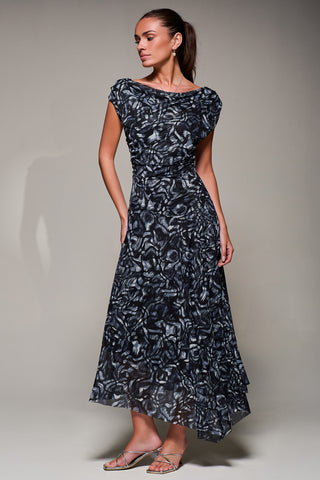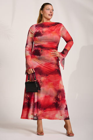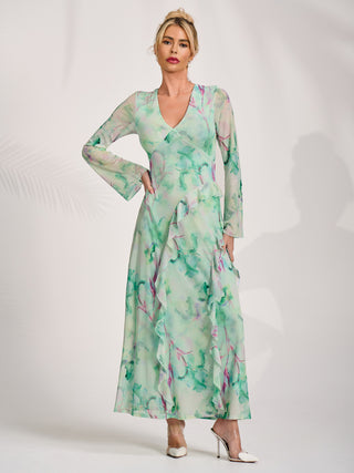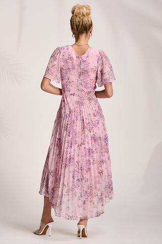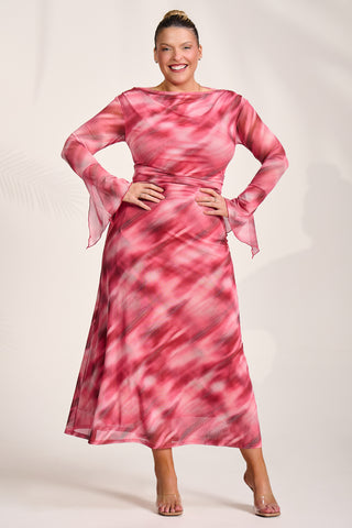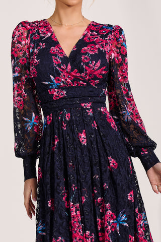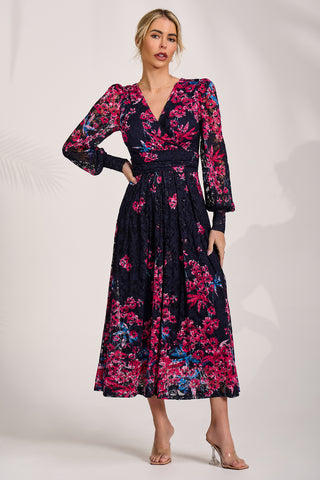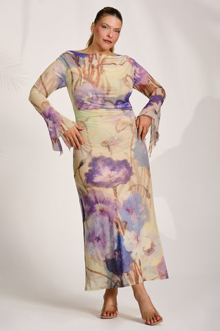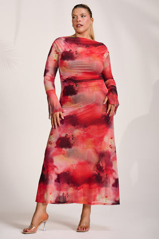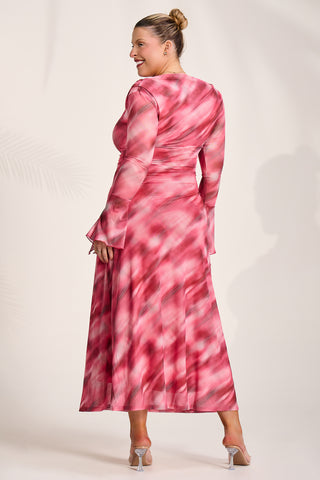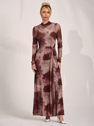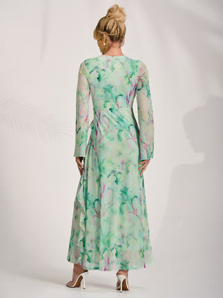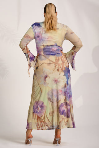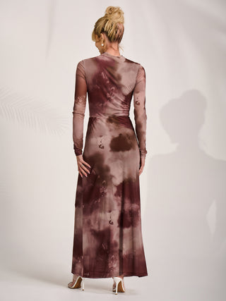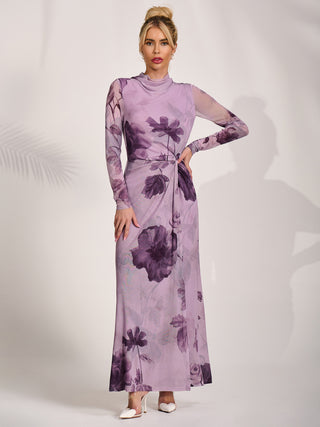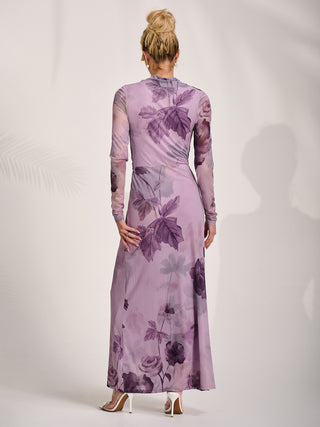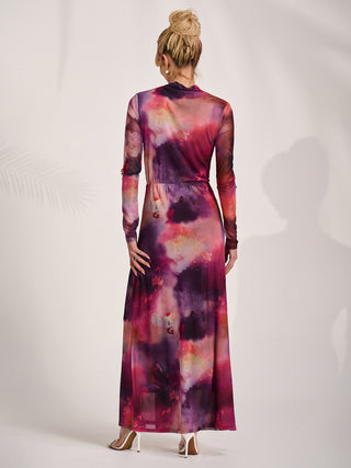 Mirror Print Mesh Wrap Maxi Dress, Pink Floral