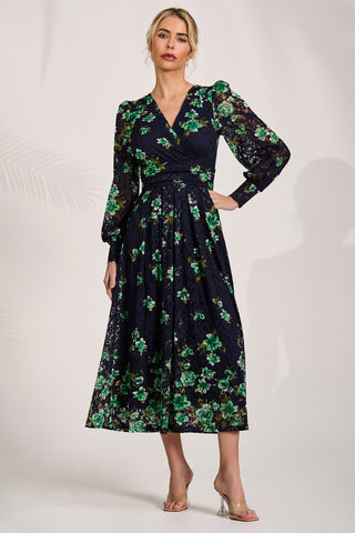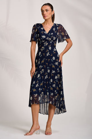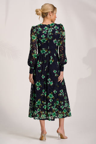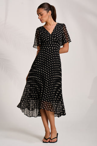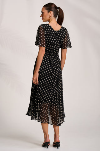 Metallic Spot Print Puffy Sleeve Maxi Dress, Navy
