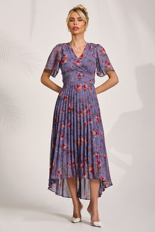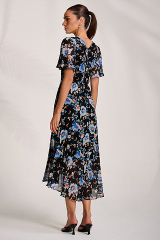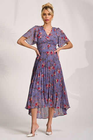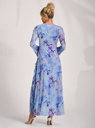 Angel Sleeve Mesh Bodycon Dress, Blue floral