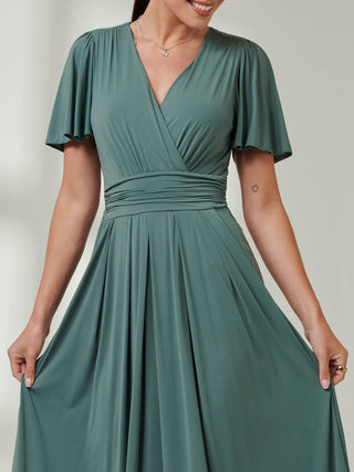 Wrapped Bodice Jersey Maxi Dress, Steel Blue