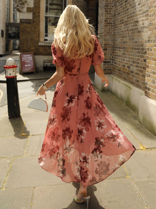 Two Tone Chiffon Midaxi Dress, Red Floral