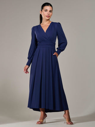 Petite Long Sleeve Soft Silky Jersey Maxi Dress, Navy