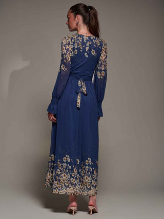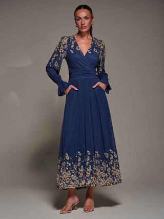 Stella Floral Print Wrap Mesh Maxi Dress, Navy Floral