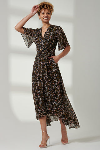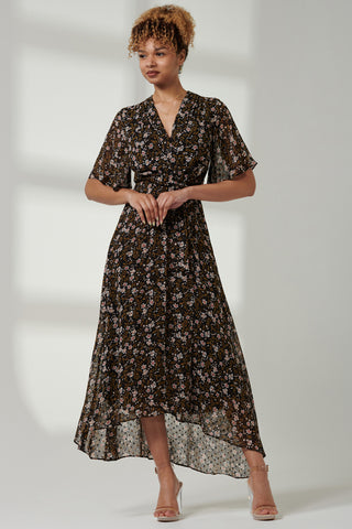 Kiera Wrap Front Maxi Dress, Navy Floral