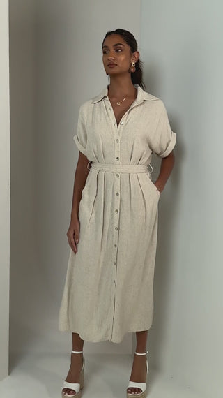 Jessie Linen Shirt Midi Dress, Oatmeal