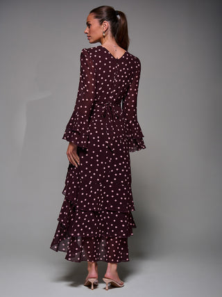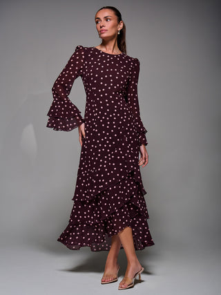 Rashelle Jersey Long Sleeve Maxi Dress, Burgundy