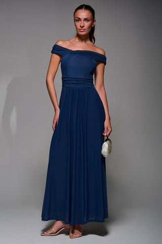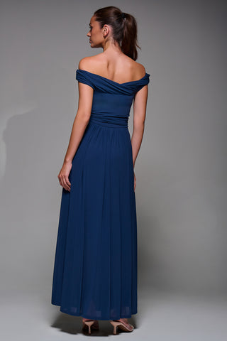 Bardot Neck Mesh Maxi Dress, Stormy Blue