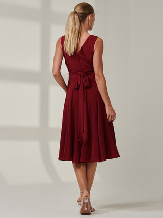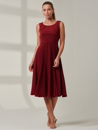 Jolie Moi Black Belted Fit And Flare Dress, Burgundy