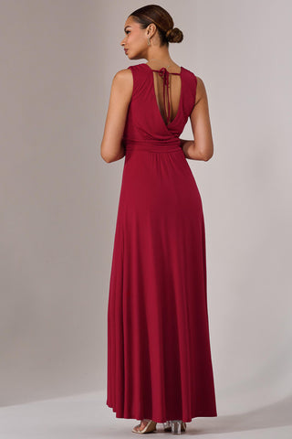 Mesh Sleeveless Tiered Maxi Dress, Burgundy