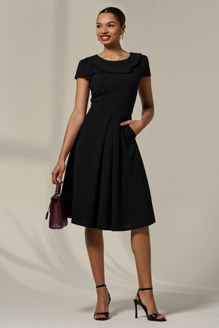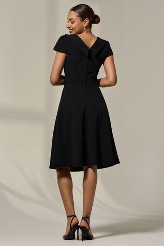 Roll Collar Cap Sleeve Midi Dress, Beige