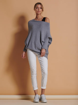 Roll Neck Pocket Front Knit Jumper, Beige Heather