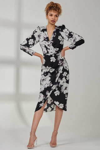 Draped Wrap Bodycon MIdi Dress, Taupe
