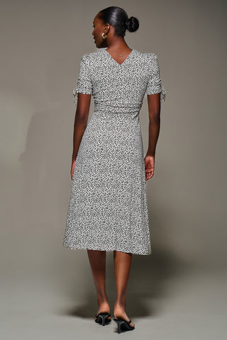 Jersey Tie Sleeve Wrap Front Midi Dress, White Polka