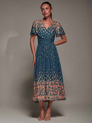 Gracelyn Wrap Front Mesh Maxi Dress, Blue Floral