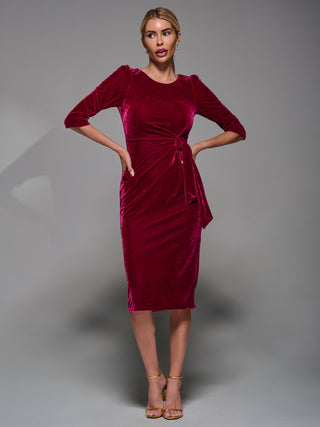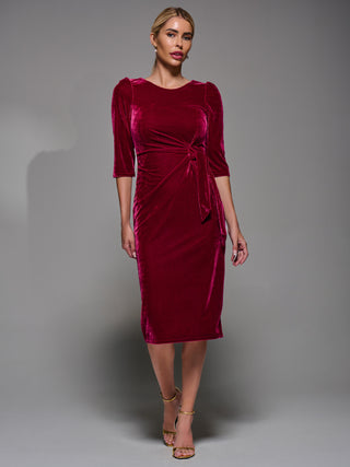 Angel Sleeve Mesh Wrap Maxi Dress, Burgundy