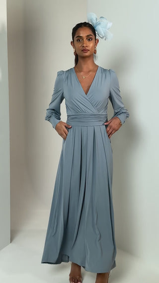 Giulia Long Sleeve Maxi Dress, Steel Blue